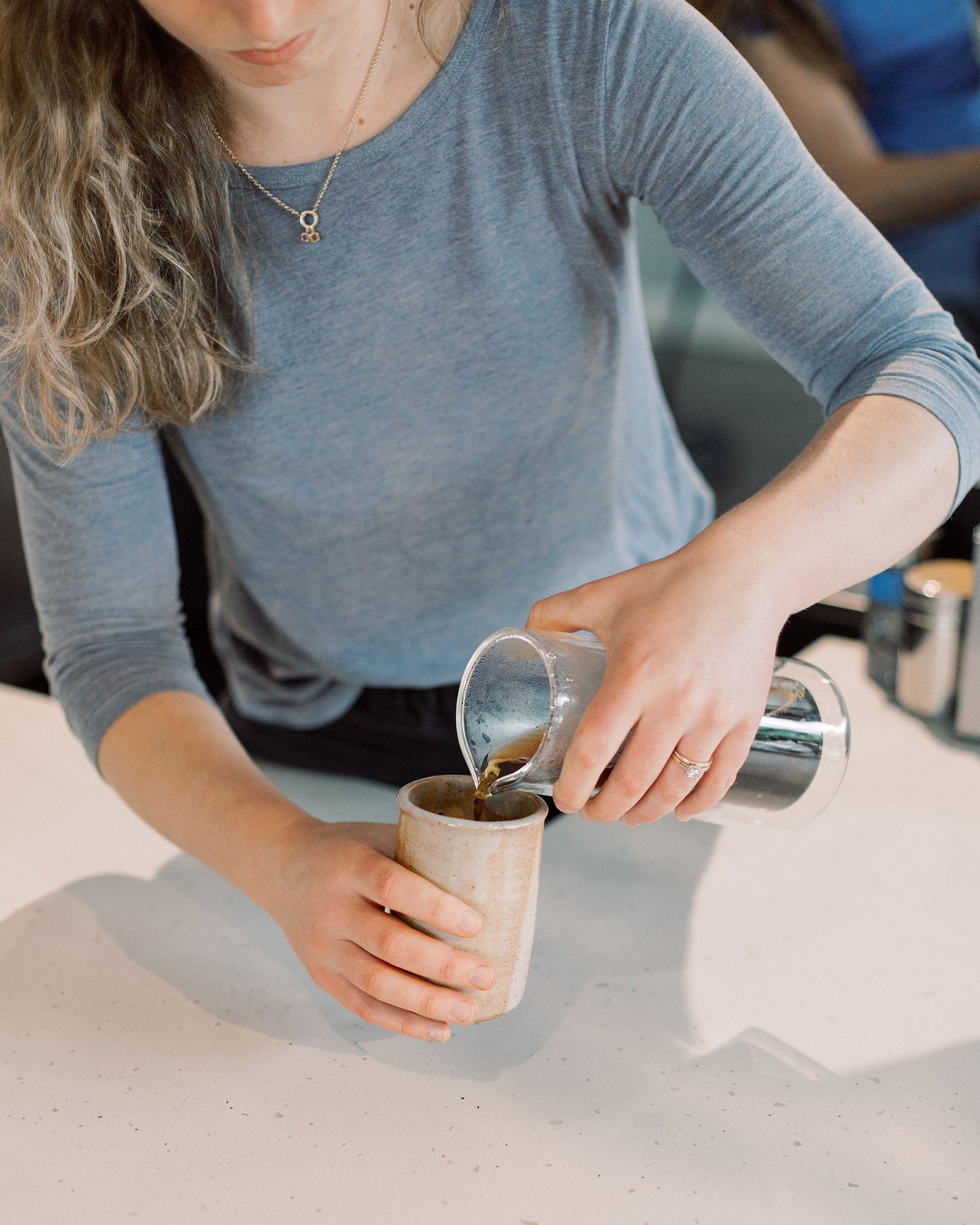 - Press the coffee through, into your cup slowly.